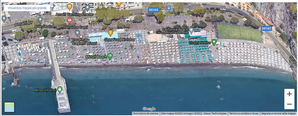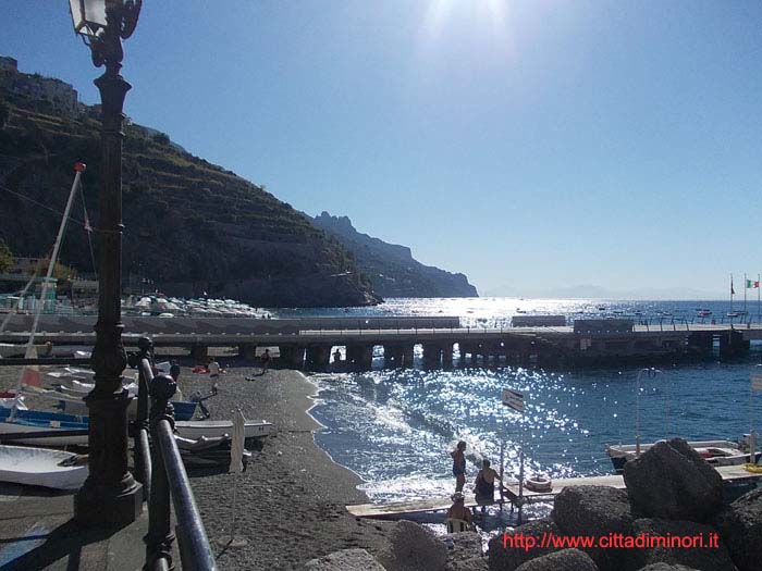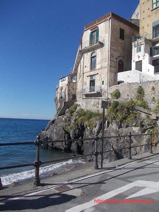 Una roca divide la antigua ciudad de los asentamientos de los romanos en la costa de Amalfi: Reghinna Maioris (la moderna Maiori) y Reghinna Minoris (la moderna Minori). Estas dos comunidades se consideran gemelas, incluso si Minori aún conserva el encanto antiguo de las ciudades típicas de la costa de Amalfi. Minori recibe a los turistas que vienen de la carretera S.S. 163 con el panorama de la pintoresca y pequeña playa, rodeada de bonitos jardines. En medio del jardín hay una fuente con leones, construida en el siglo XI. Las montañas que rodean Minori están cubiertas por limoneros: los limoneros se han cultivado aquí durante siglos, en los típicos campos en terrazas. Minori contiene los restos interesantes de una villa romana del siglo I a. C.: esta era una residencia, utilizada por personas nobles que seguramente eran muy ricas. Minori siempre ha sido amado por personas de cualquier edad. Minori también tiene una larga tradición religiosa que ha dejado interesantes edificios, por ejemplo, la archicofradía del Santísimo Sacramento con un hermoso altar de mármol y la basílica dedicada a la Patrona, Trofimena, cuyo cuerpo llegó milagrosamente a la playa de Minori.