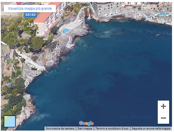 La pequeña playa (a unos 100 m.) Es accesible desde la carretera 163 por una escalera de casi 200 escalones. Altos acantilados que lo rodean y esto implica que ya en las primeras horas de la tarde está en la sombra.