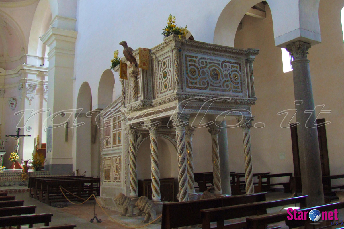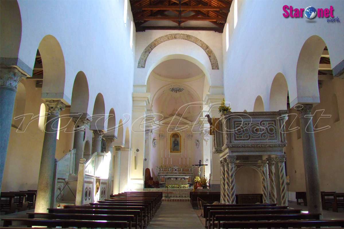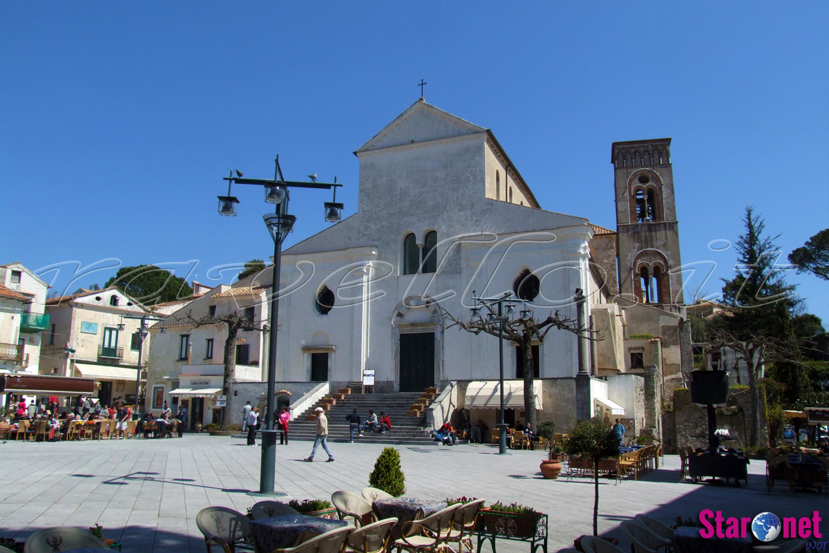 La catedral, fundada en 1086 por el primer obispo de Ravello Orso Papirio. El portal de bronce de Parisano di Trani se realizó en Constantinopla en 1179 y fue llevado a Ravello por mar; está dividido en 54 cuadros que representan a los Santos, la Pasión, los leones y los grifos. El púlpito en el interior de la Catedral es de Bartolomeo da Foggia (1272) y está dedicado a San Pantaleone, el santo patrón de Ravello, donde su sangre aún se conserva.
